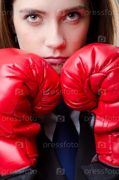 Деловая женщина в боксерских перчатках