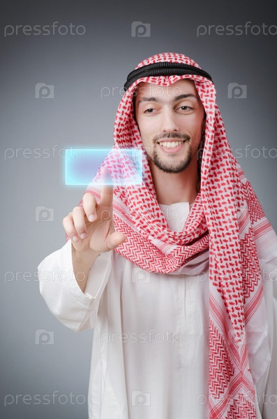 Мужчина-араб, нажимающий на виртуальные кнопки