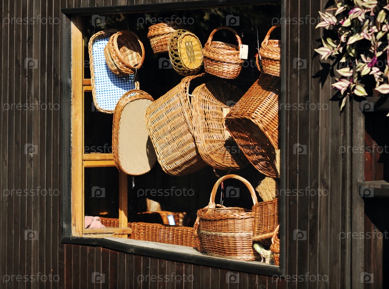 Посуда из тростника с деревянными украшениями на свежем воздухе