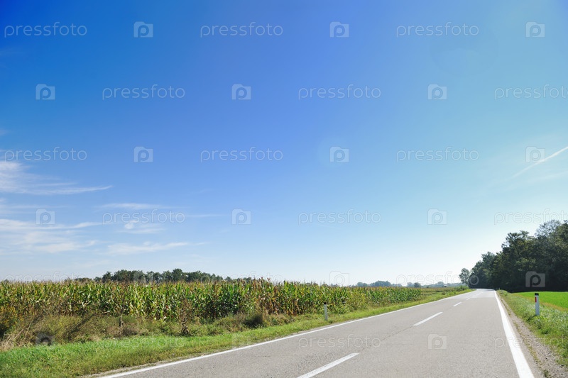 Дорога среди зеленых полей в сельской местности