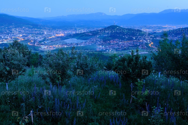 Ночной вид города Сараево со следами движущегося света