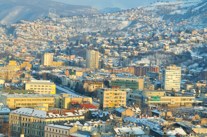 Вид города Сараево зимой