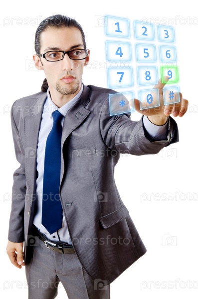 Бизнесмен нажимает на виртуальную кнопку