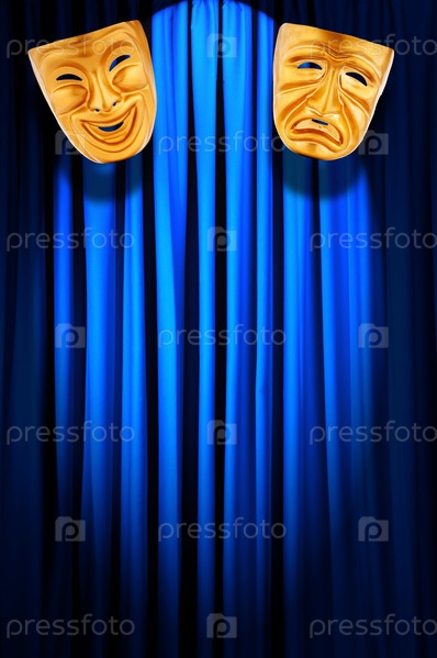 Маски на фоне синего занавеса