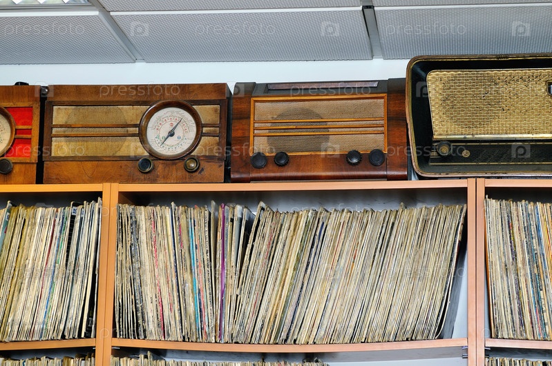 Коллекция музыкальных виниловых пластинок в фонотеке
