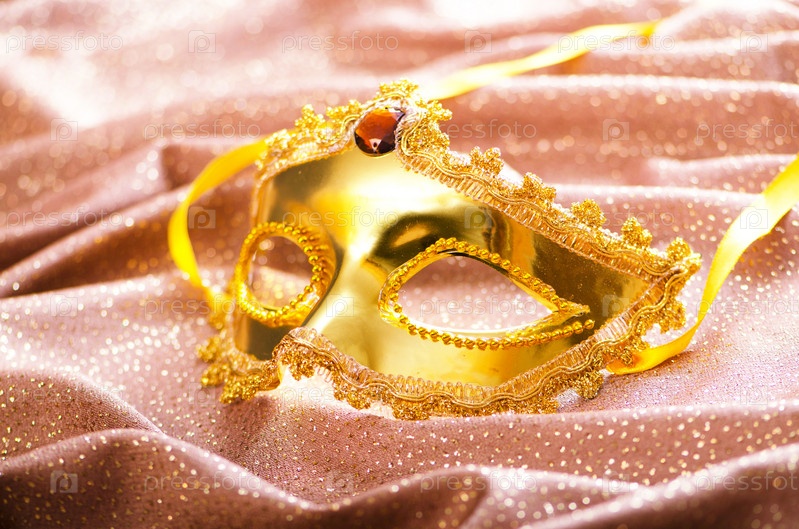 Золотая маска на фоне сатина