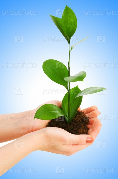 Зеленое растение в руках