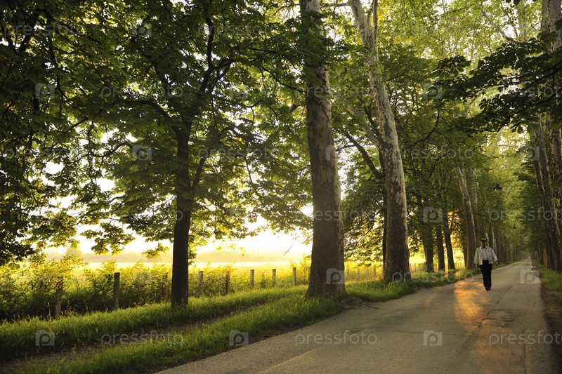 Яркое солнце просвечивает сквозь деревья прекрасным прохладным утром