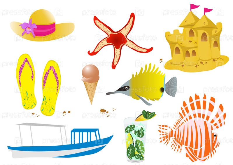 Набор значков на тему "Отдых на море"