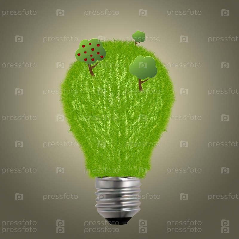 Лампочка с деревьями и травой