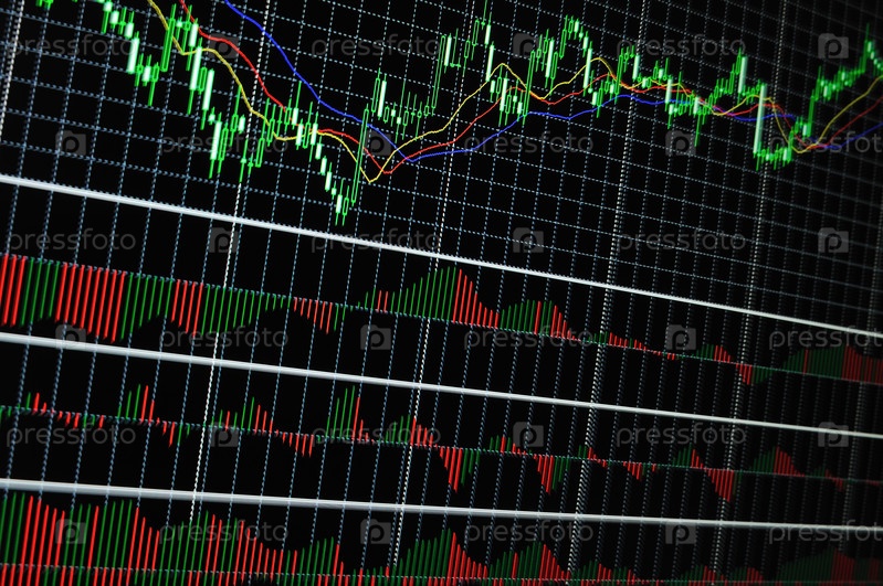 Графики фондового рынка на большом жидкокристаллическом мониторе крупным планом
