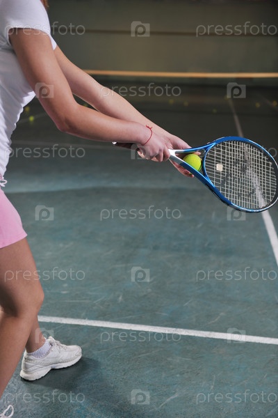 Молодая теннисистка на тренировке в помещении