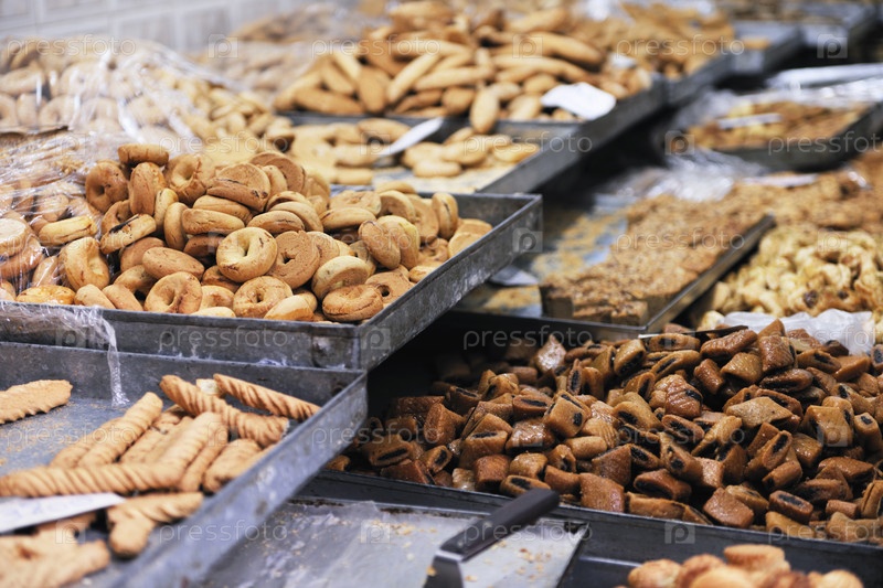Аппетитные сладости на уличном рынке в Тунисе, Африка