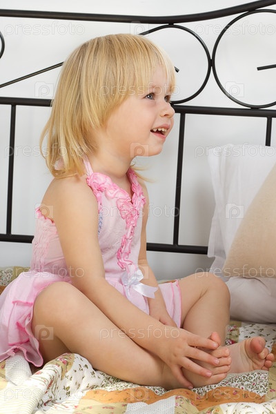 Счастливый ребенок на кровати