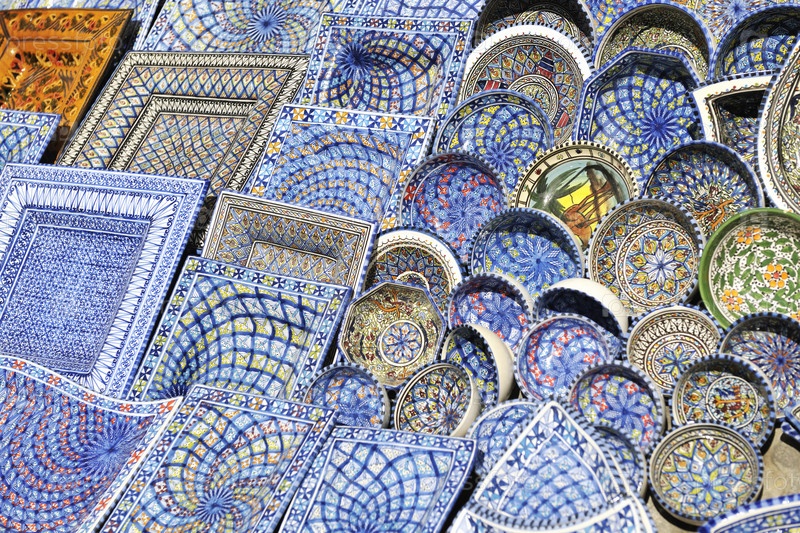 Красочные керамические сувениры на уличном рынке в Тунисе, Африка