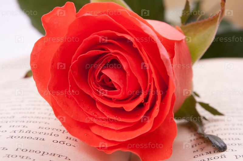 Алая роза на открытой книге