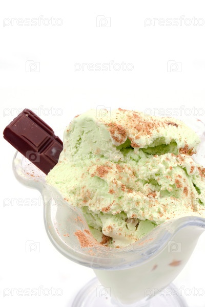 Мороженое с шоколадом на белом фоне