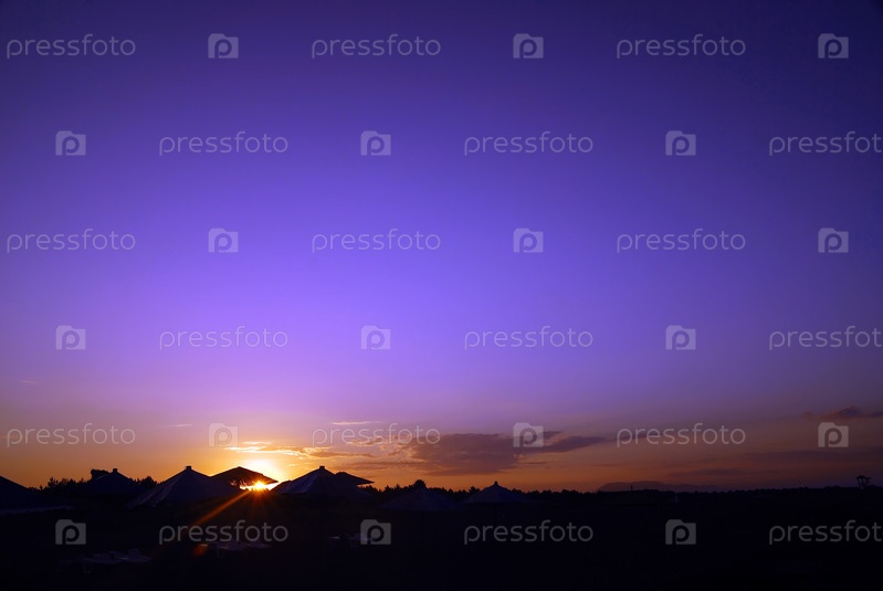 Силуэты пляжных зонтов на закате
