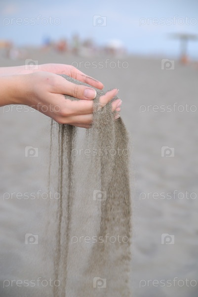 Мелкий песок сыплется из женских ладоней