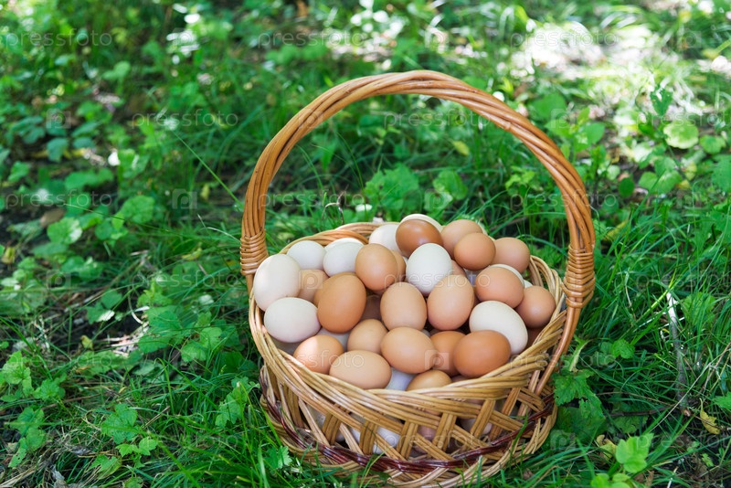 Плетеная корзина с яйцами