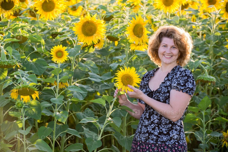 Женщина в поле подсолнухов