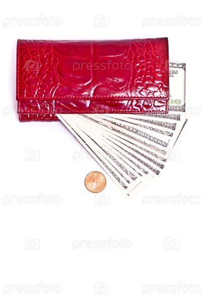 Долларные купюры и красный кошелек изолированы на белом