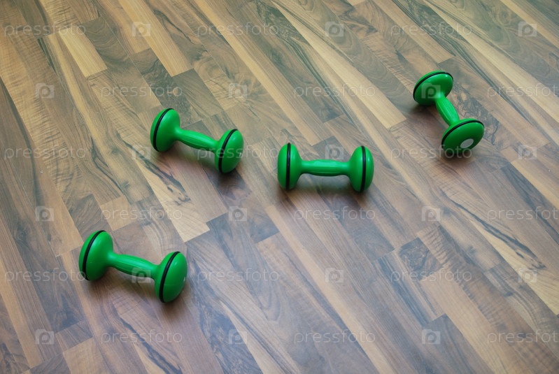 Зеленые гантели в фитнес-клубе