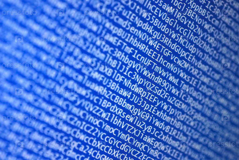 Кодированный цифры и буквы крупным планом на жидкокристаллическом мониторе