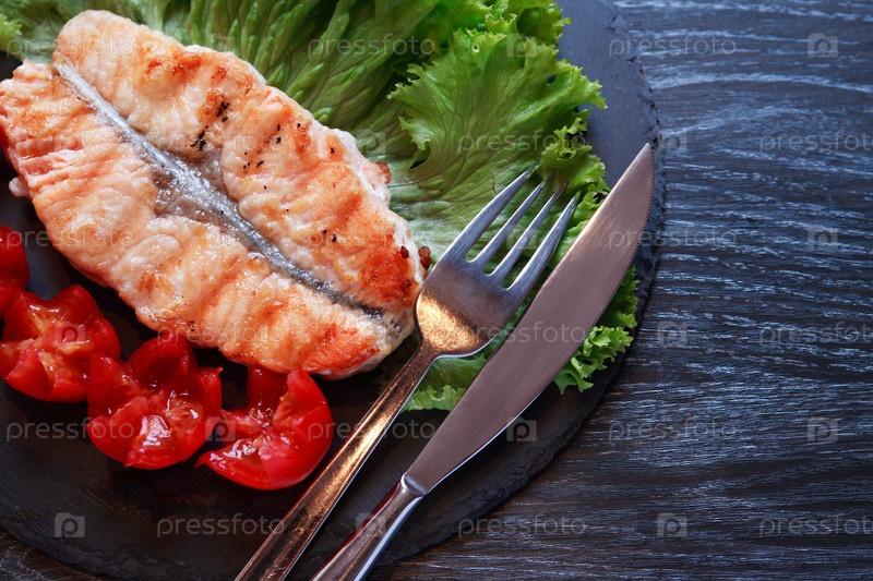 Жареная рыба и овощи
