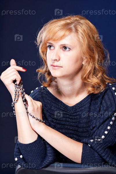 Красивая девушка со связанными руками в студии фотографии