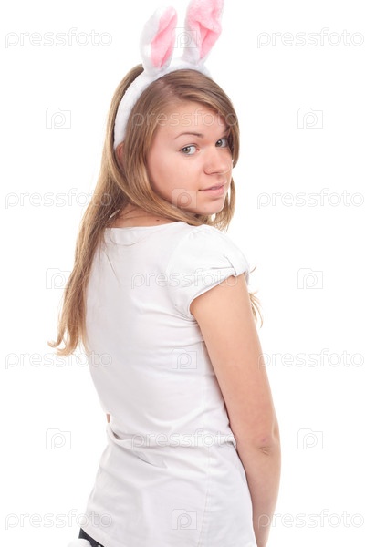 Девушка с кроличьими ушками на голове в студии фотографии