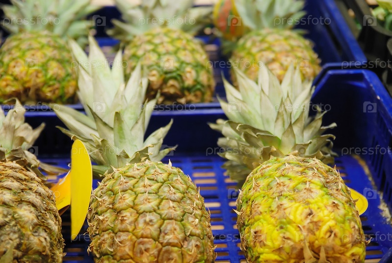Свежие ананасы в супермаркете