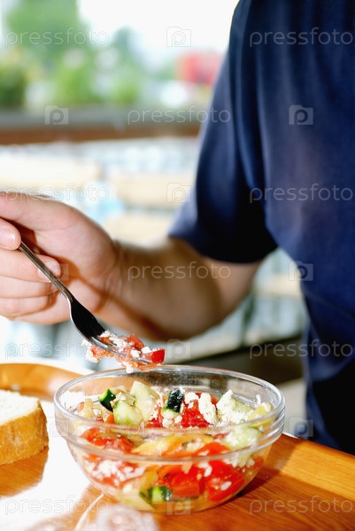 Человек ест полезную пищу в ресторане
