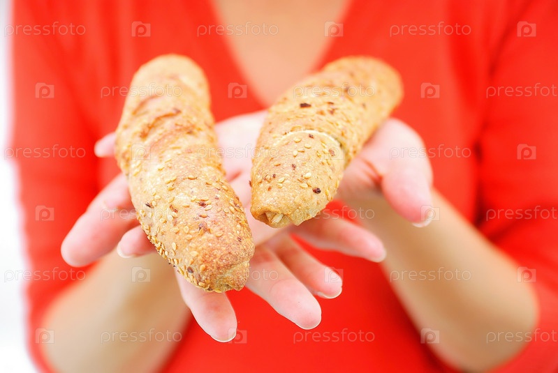 Свежие круассаны в женской руке