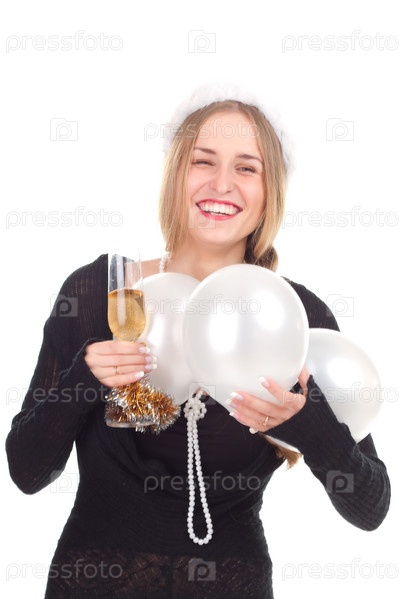 Девушка празднует Новый год с бокалом вина, студийный портрет