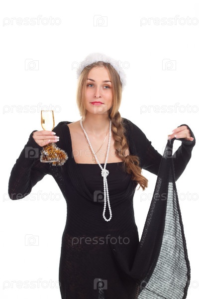Девушка празднует Новый год с бокалом вина, студийный портрет