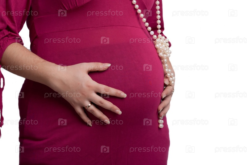 Беременная женщина на белом фоне