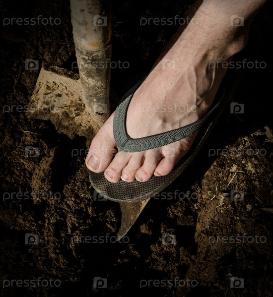 Нога наступает на лопату