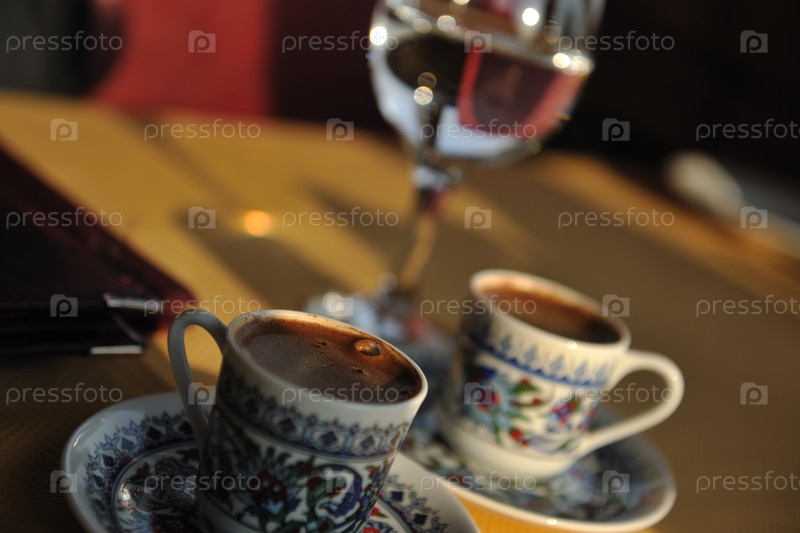 Свежий ароматный турецкий кофе в ресторане в Стамбуле