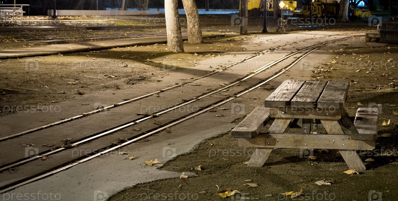 Колея в старом Сакраменто в ночное время