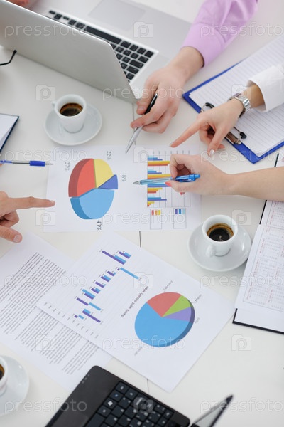 Руки деловых людей, ведущих дискуссию на собрании, на документах