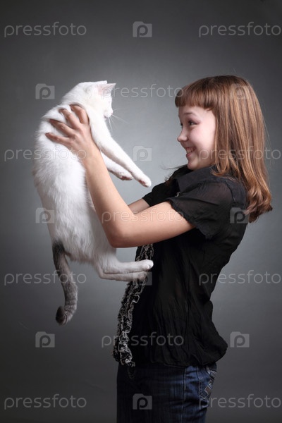 Девочка с белым котом