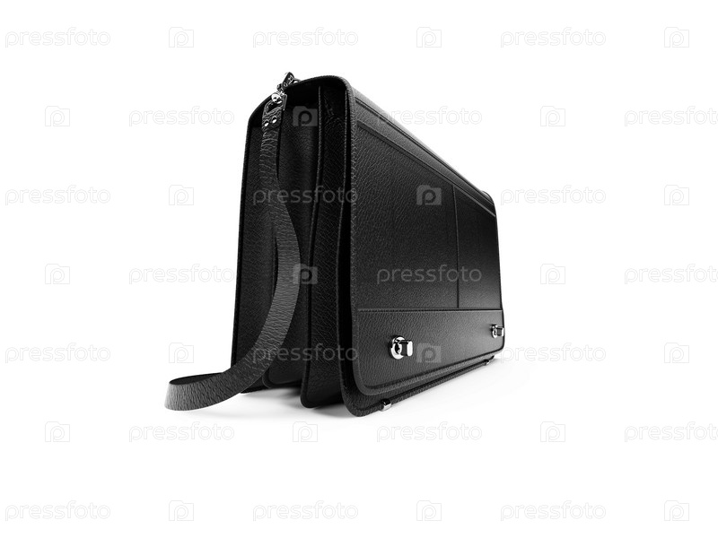 Изолированная черная кожаная сумочка на белом