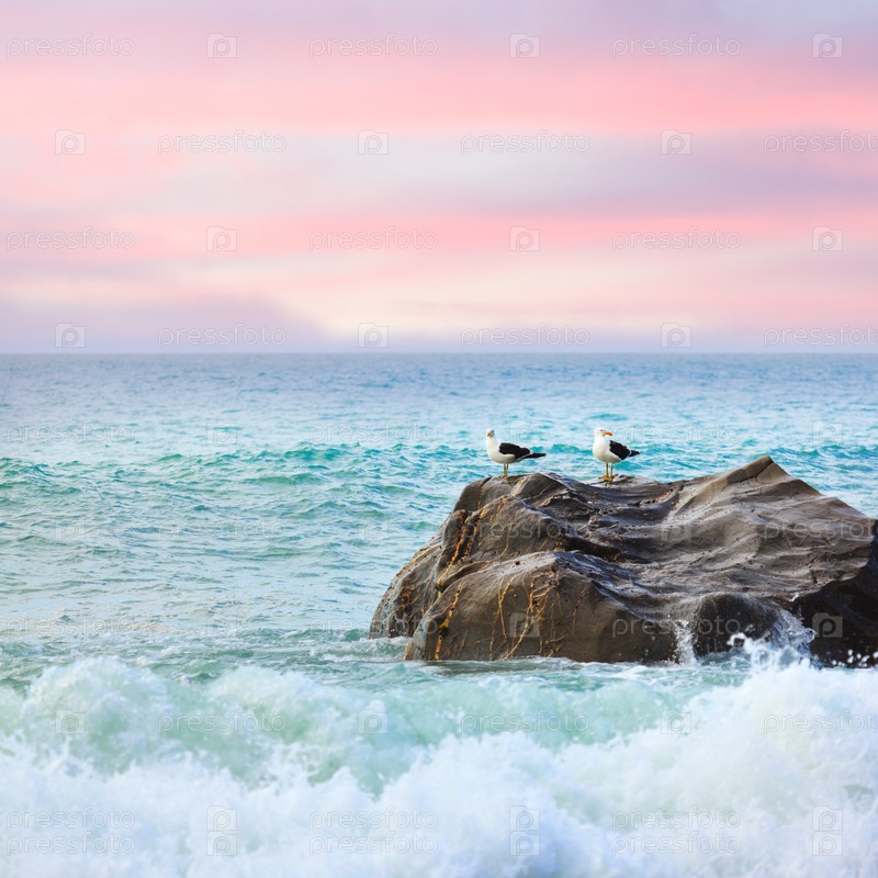 Две чайки на скале у моря