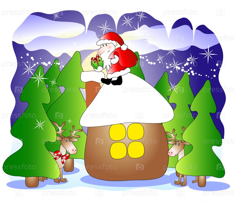 Санта на крыше домика
