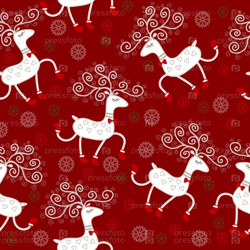 Нарисованные олени на красном фоне