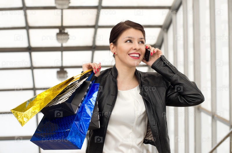 Портрет красивой девушки с пакетами