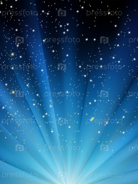 Снег и звезды падают на фоне синего неба