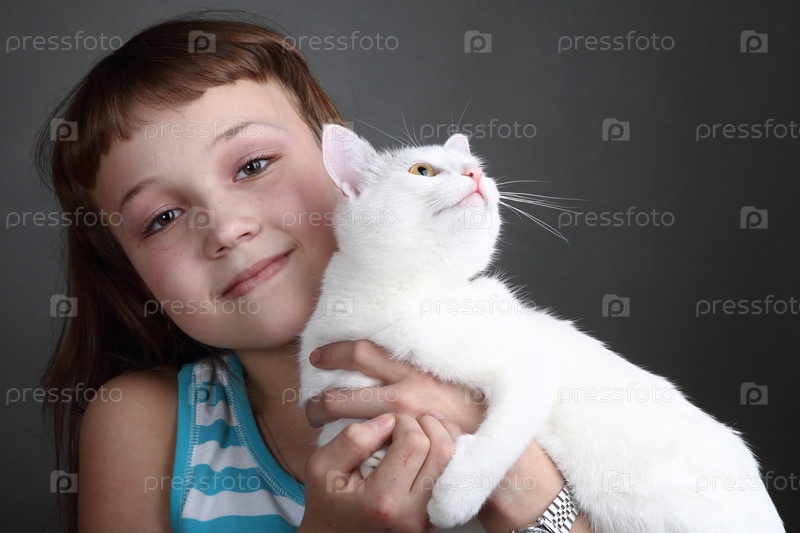 Девочка с белым котом