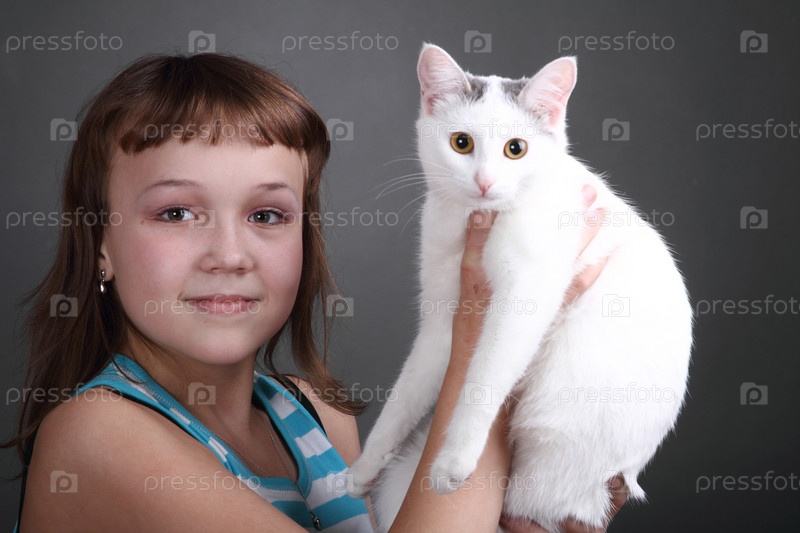 Девочка с белым котом